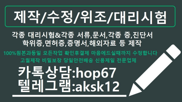 면허증위조か컴활대리시험か톡상담hop67텔레aksk12임용장제작#토스대리시험#장애인주차가능표지위조/면허증제작/서류위조/성적표위조/학위증명서제작/상속위조